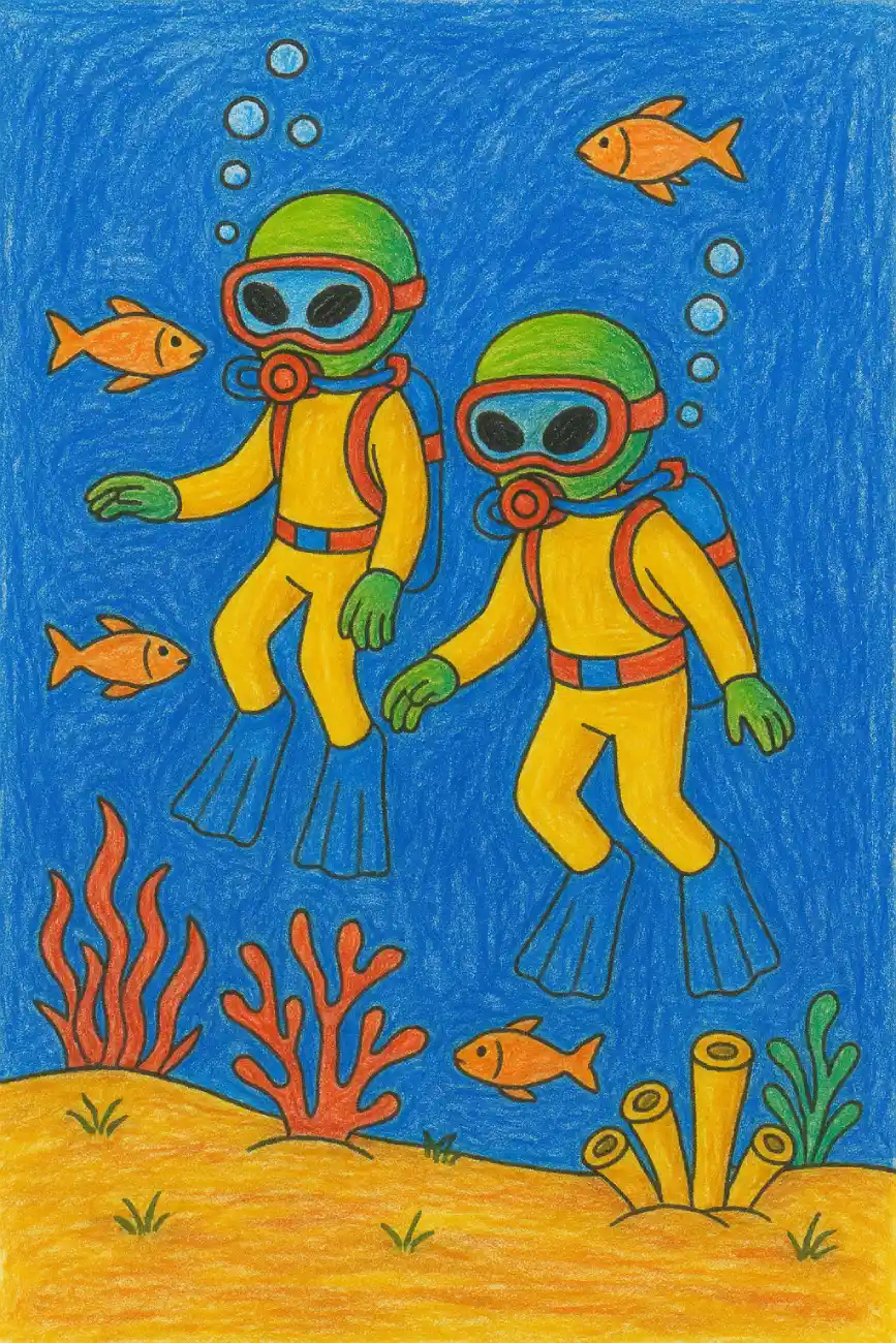 Aliens Diving Underwater