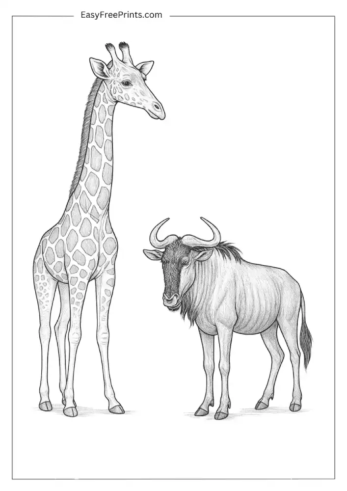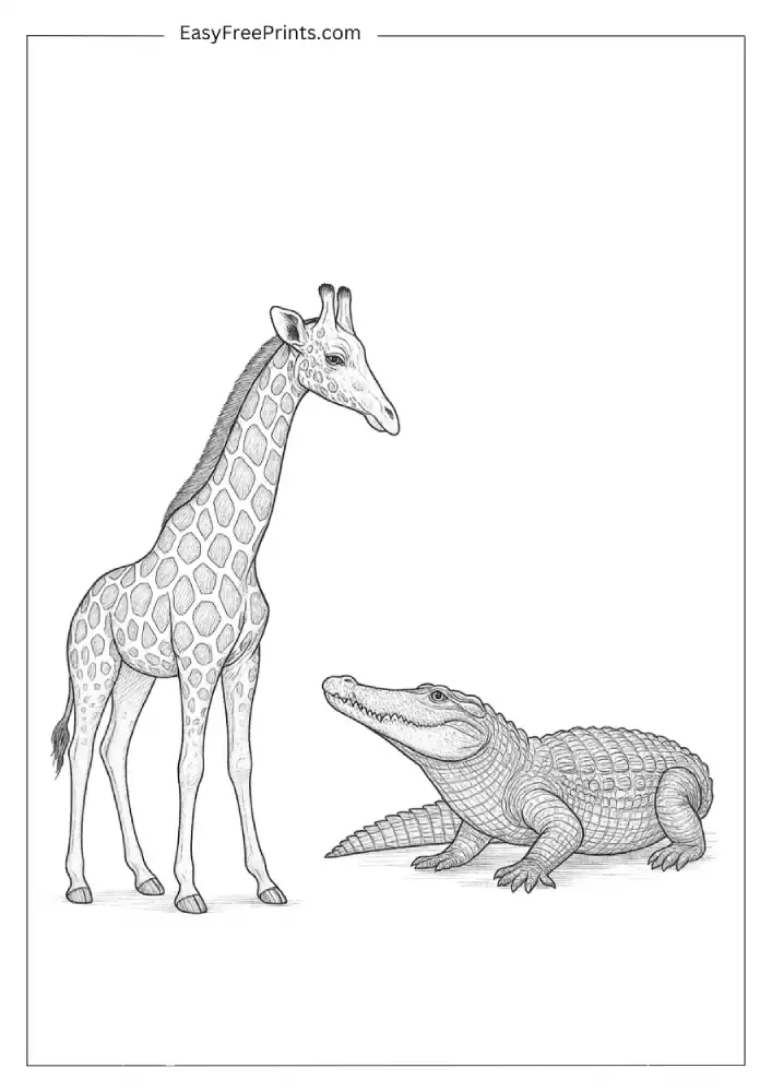 These two animals are just chilling together, showing off their unique looks. It’s a great page for kids who enjoy wildlife and want to try coloring something that feels closer to nature.