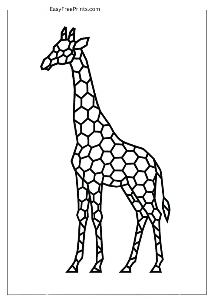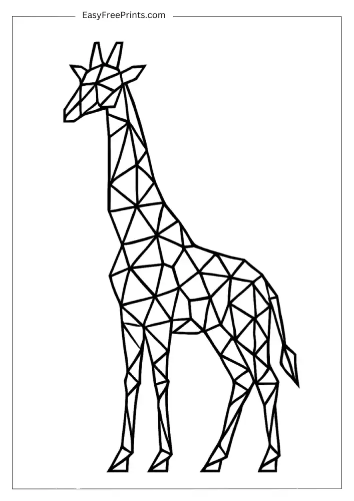This close-up giraffe head is built entirely from angular mosaic-style shapes. It’s perfect for anyone who wants a creative, detailed coloring challenge with lots of tiny sections to play with.